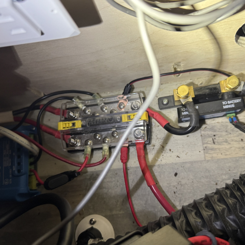 I plan to mount a Victron 75/15 MPPT controller just forward of the negative battery terminal on the back of the rear bench. I will probably mount the bus bars in there as well if I can make them fit, otherwise they will be placed in the left wheel-well. I will likely leave the existing Victron 75/10 MPPT controller where it is now in the left wheel-well. I am also adding a 300A Victron Smart Shunt with temperature sensor.