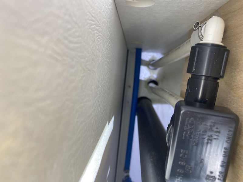 The valve pictures are here (white lines going behind panel going to check valve and then down to black tank):