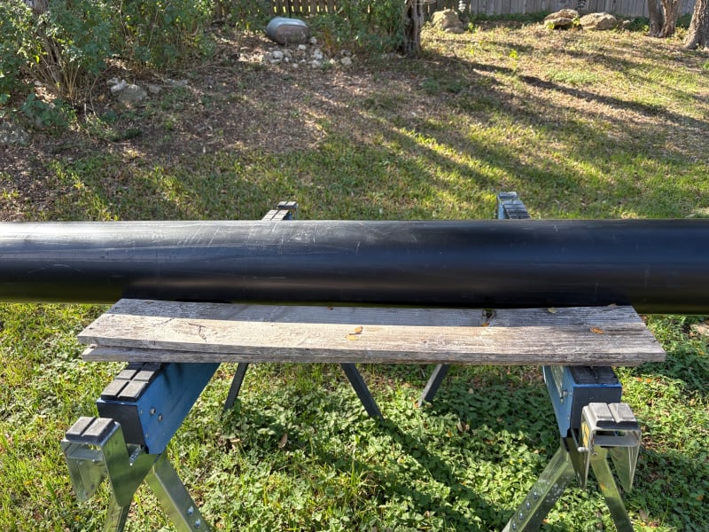I sanded the pipe and painted it (having it already be black made the job a lot easier) and then glued on the end caps.