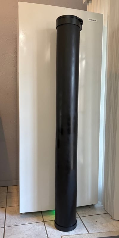 I have a one piece sewer hose that has an elbow attached (non-removable). None of the storage tubes I could find commercially will accommodate the elbow, so I decided to build my own...