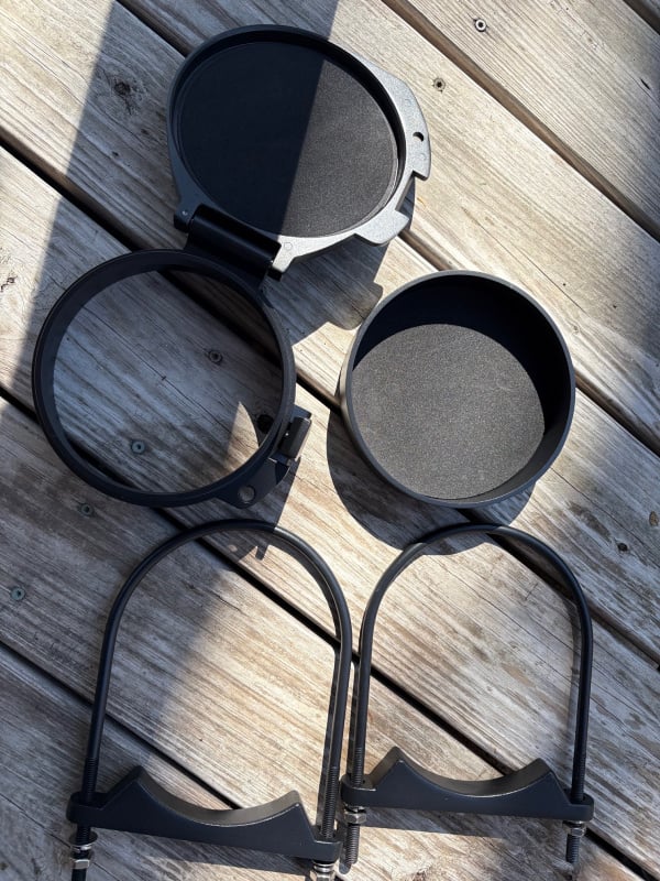 Then I got a can of black satin spray paint and some black 8" radiator clamps (aka jubilee clips, aka worm gear clamps).