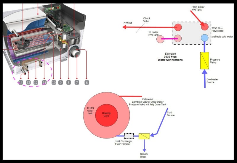 It would be Super Helpful if @f1xedgear could provide some simple diagrams of how his 3030 Plus unit is connected to the trailer fresh water plumbing so the above estimate can be refined.