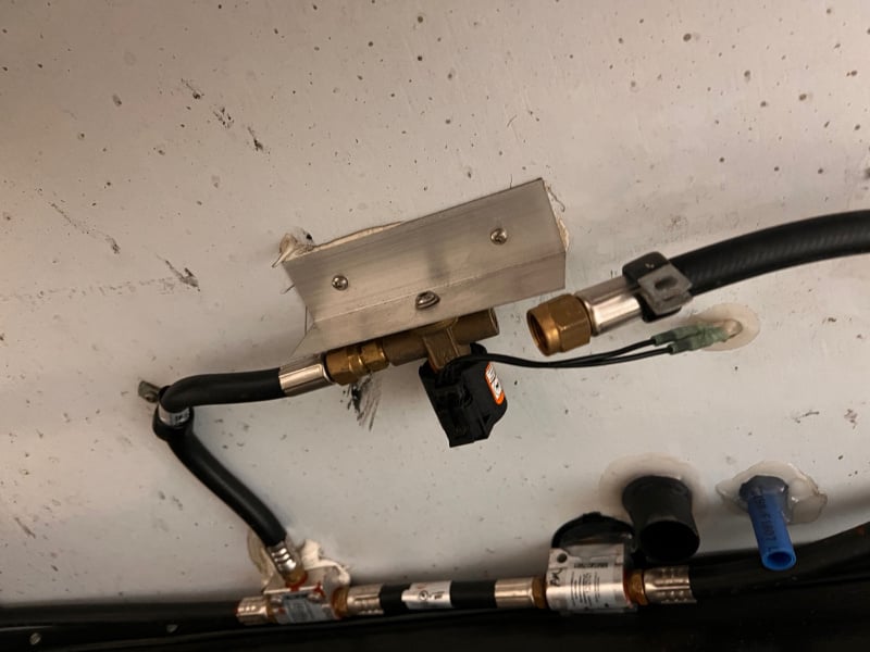 I am re modeling the rear kitchen on out 22 Tab 320 CS-S and removing the rear stove and noticed there is a valve with 2 electrical wires and a T fitting under the rear of the Kitchen area, What is the electrical valve for?
