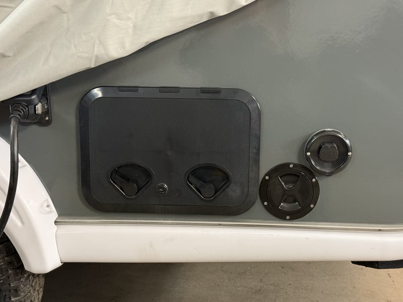 We also use a mattress topper on the rear bed , so 1 more thing to get in the way and remove to access the yellow flaps. I don't love the placement of the access port I had to drill through the sidewall (because I have OCD, lol) . It just looks a little awkward , but it was literally , the only possible location to drill/install it to reach both yellow flappers .