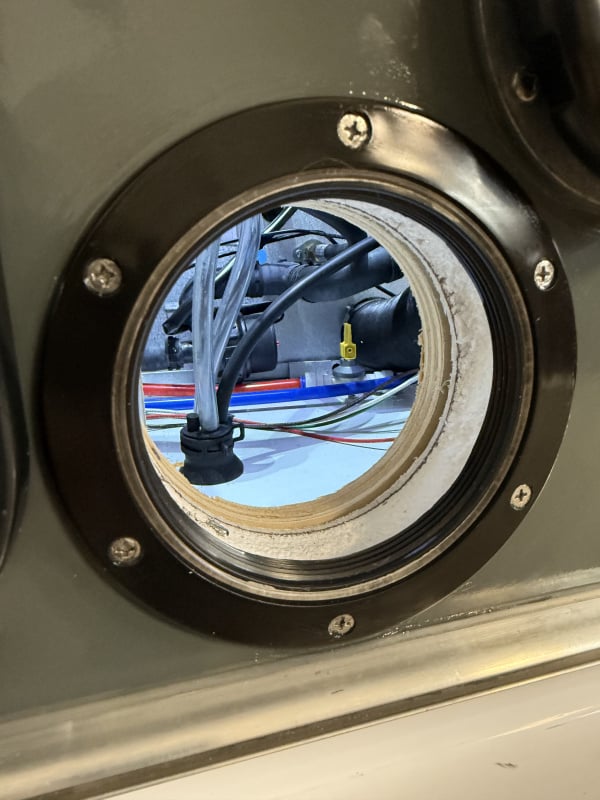 Purchased a 4" marine access deck plate , (overall is approx 6") and CAREFULLY drilled a small hole (ok, its a LARGE hole !) , in the side of our 400 !