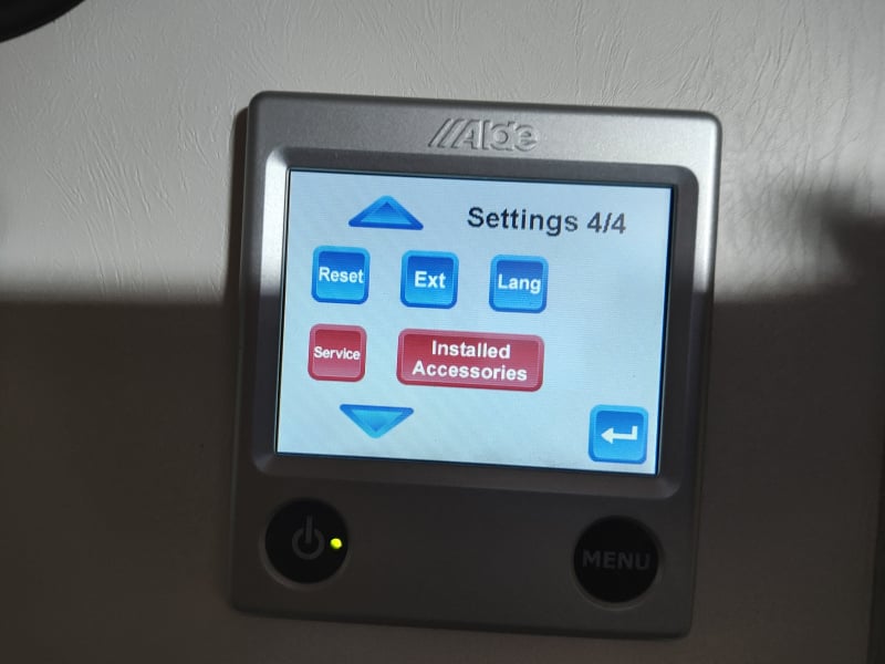 I recently purchased a 2022 320S and have been attempting to learn the various systems.  Today, while plugged into shore power, I was stepping through the menu items of the Alde Control Panel.  I discovered that the Tool Menu functions for "Service" and "Installed Accessories" were colored red rather than the typical blue color.  The system seemed to be working fine when I turned it on, and the Alde fluid level was good.  Has anyone come across these red colored items before and, if so, is are they anything to be concerned about?  I don't believe the "lnstalled Accessories" applies to me but I'm wondering about the "Service" item.  Thanks in advance.  I'm attaching a few pics of the control panel screen and hope they make it through with the post.