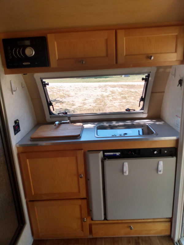2016 Tab 320 S Max for sale. The camper has a wet bath (shower)/toilet with fresh water, grey and black water holding tanks. There is a queen sized sleeping area, 19 inch TV and DVD player/radio with a great surround sound system and Bluetooth connectivity. The queen size bed (or two twin beds) converts into a dining area with a table. There is a three way (electric , propane or battery) Norcold refrigerator that is surprisingly roomy and efficient. The two burner stove works well for indoor cooking. The Alde furnace and hot water system is very efficient for those cold evenings and when you need a hot shower after a long day. The Fantastic, 3 speed, two way, ceiling fan provides excellent ventilation and air movement. There is an AC powered air conditioning unit. The camper tows very well behind vehicles rated with a tow capacity over 2,000 lbs.