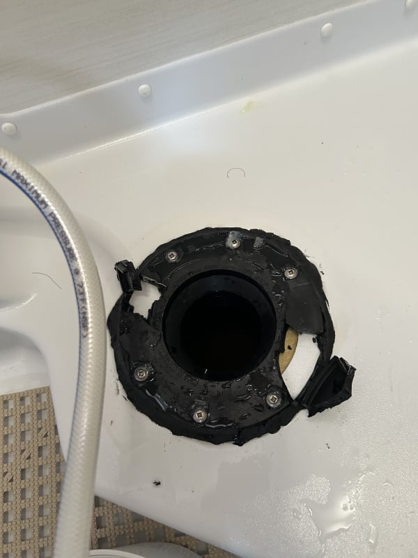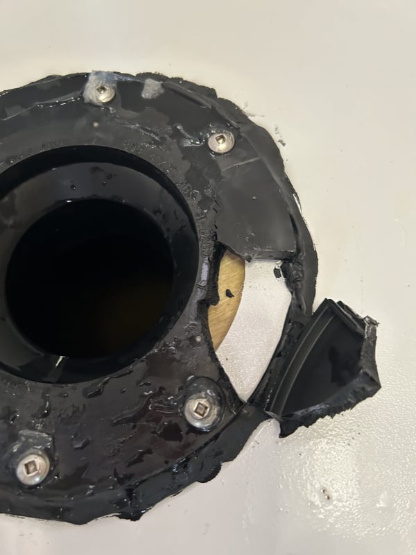 Have a 2025 400 boonbock . The toilet broke off yesterday while on a trip . The flange / seal broke , pulling the toilet bolts out of the flange .