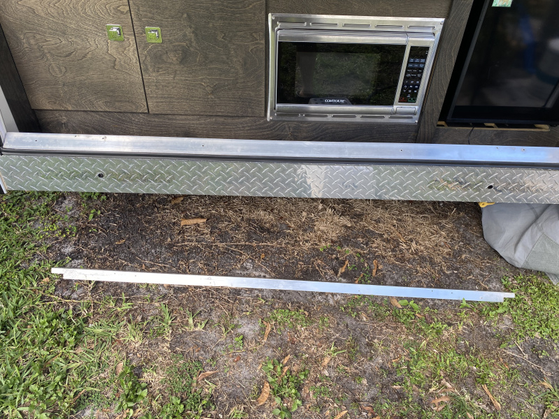 On some CS builds the aluminum bar is sealed down with Geoseal.  It is very difficult to separate from the frame because of this and requires a thin blade between the parts.  A power "multitool" with a thin blade works well.