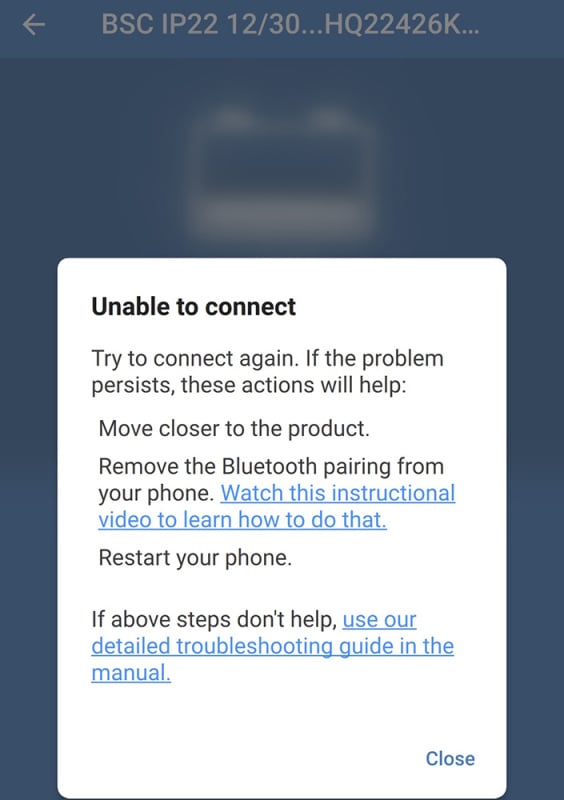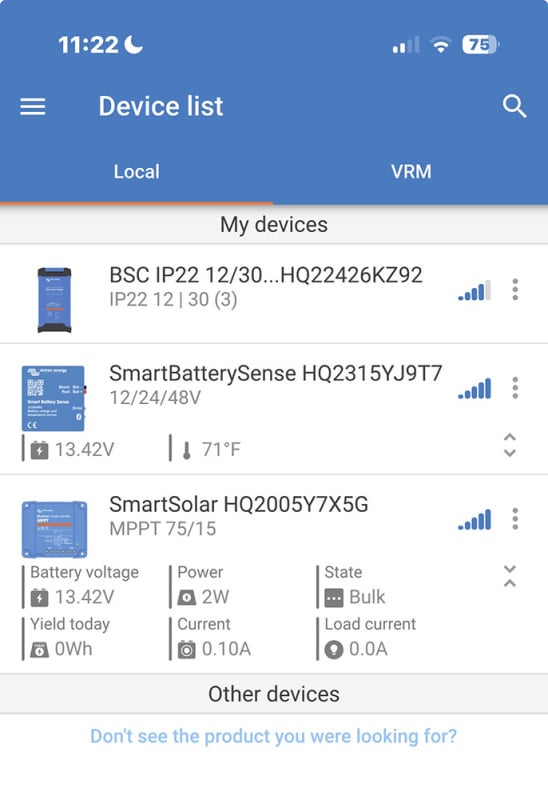 I can not pair my Victron App on my iPhone to my Victron BSC IP22 Charger. It shows up on the list with the successfully paired Victron SmartBatterySense, and the SmartSolar, but this DumbUser can’t get the BSC IP22 Charger to connect. The charger is working. My battery is full.