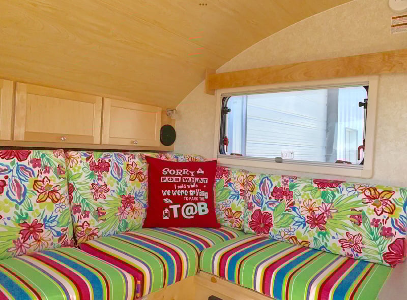 4) we decided to set our TAB up in twin bed configuration. What you see are wood slat supports I made with legs that fold up when not in use to support about 5 inches of the seat cushion. We slide the bottom cushion out just enough for back cushion to slide down. We are able to keep the table up, turn it long side facing the back of the TAB, and it becomes our nightstand.