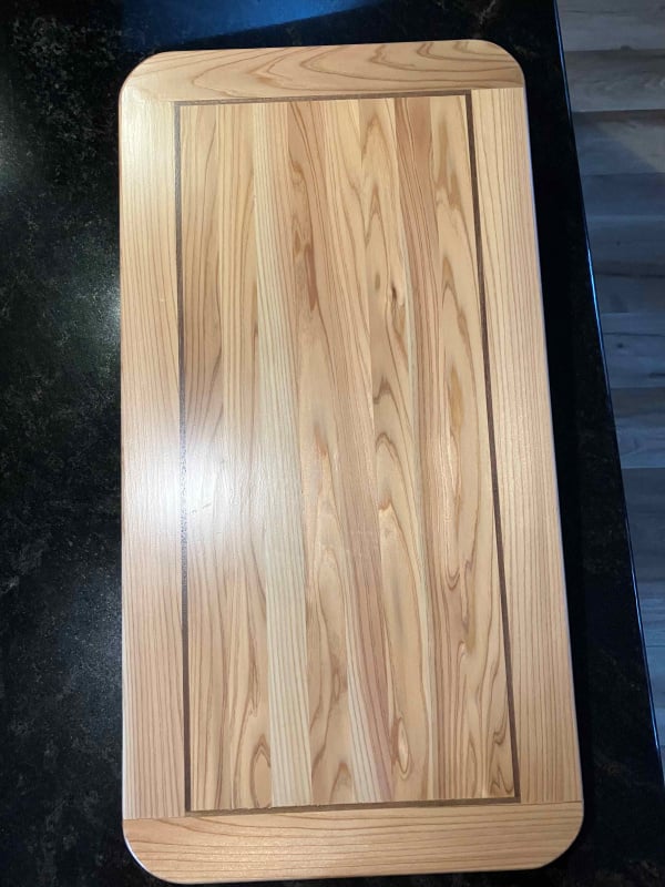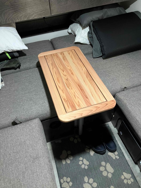 Mad a new indoor table for T@B. Just birch plywood with 3/4 aluminum banding. Matches the wine rack and cup holders I'd already done. May put tempered glass on top of it. 22L x 14w x 3/4h. Cut down Laguna vertical mount a bit so it would lay flatter between then beds.