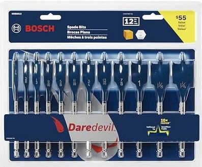 It's plastic, just use a regular twist bit, and not a spade bit.